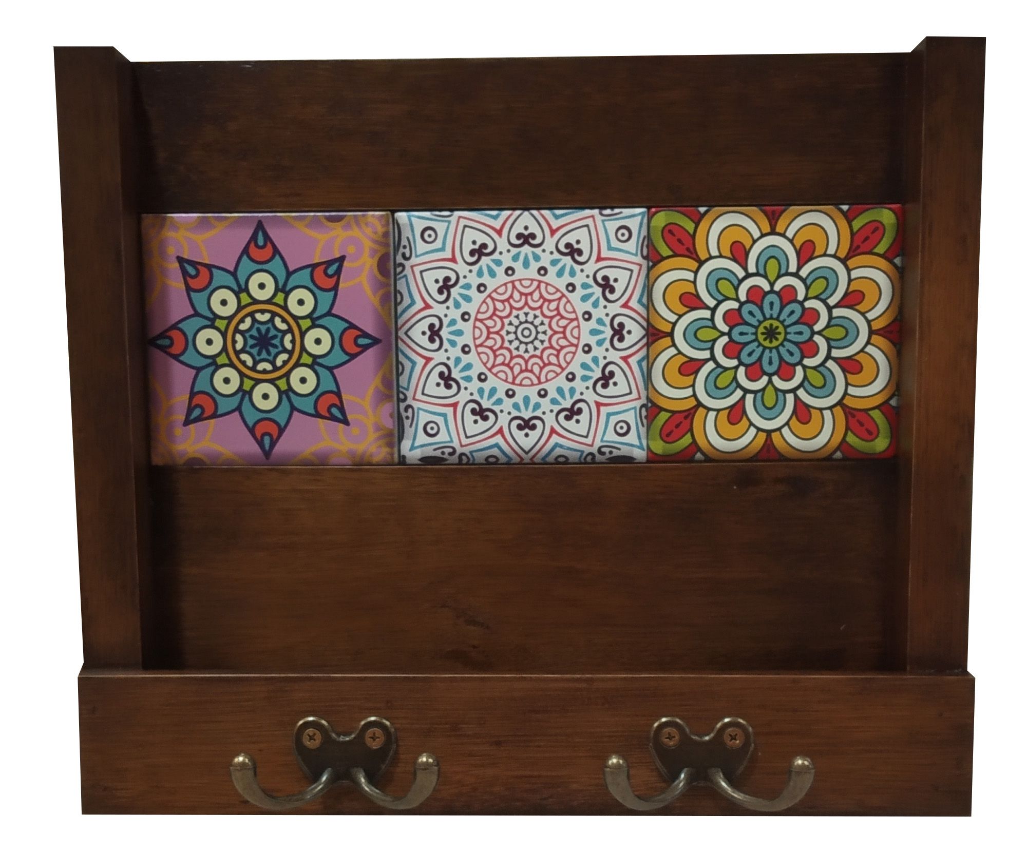 No centro, 3 azulejos cerâmicos com impressão digital conferem um ar de modernidade à peça. Além do aspecto decorativo, o porta chaves tem outras funcionalidades podendo ser utilizado para guardar celulares, escovas, carteira etc.