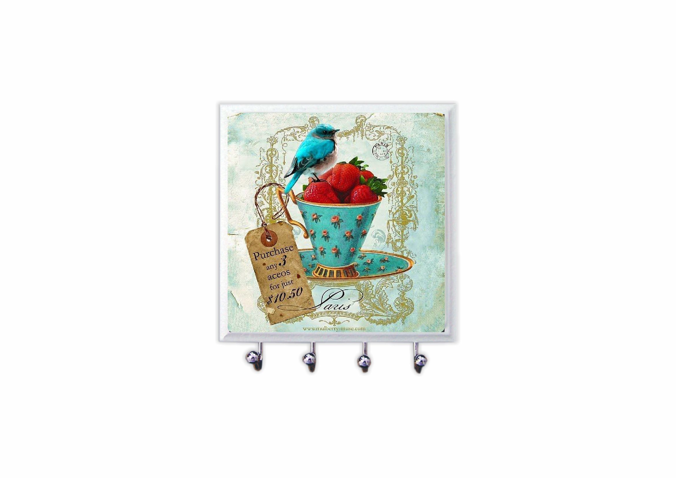 1470-005 Porta chaves Azulejo - Morango e pássaro