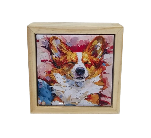 Com uma peça de azulejo impresso e emoldurado com madeira de pinus natural.
